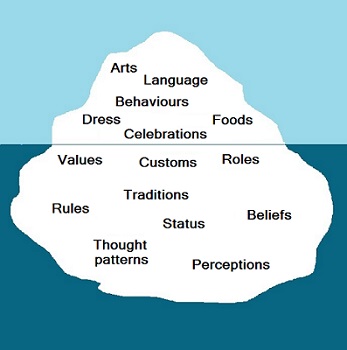 You have likely heard of the cultural iceberg model as a way of understanding culture. In this model proposed by Hall in the 1970’s, there are two main parts: the elements of someone’s culture that are visible, i.e. above the water; and the elements that are beneath the surface or less visible, i.e. the bulk of the ‘iceberg’ under the water.