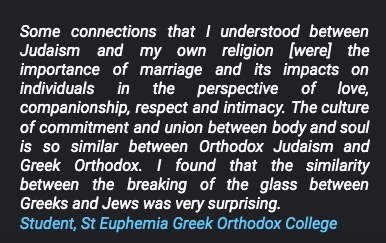 A great opportunity to deepen their understanding of syllabus content, students really enjoyed having the chance to ask an ‘adherent’ of a different faith direct questions and hearing a lived expression of their belief. Students also enjoyed rare glimpses into personal wedding photos, prayer recitation and stories of how the faith has been lived out in a COVID era.